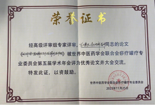 《〈外科正宗〉阴阳辨证法在拔罐疗法中的应用》一文被评为优秀论文