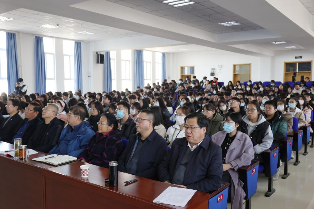 学校纪委书记杨建福主持宣讲报告,各部门、院系党政负责人,马克思主义学院教师,各院系学生科科长、专职辅导员、以及学生代表共计400多人参加。