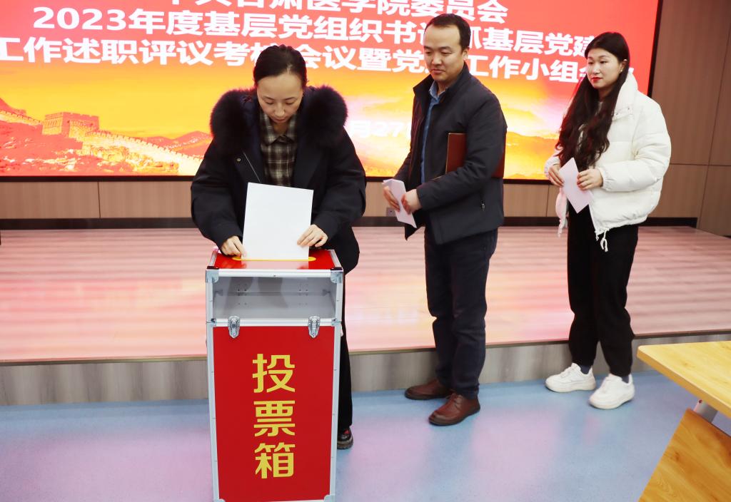 与会人员对各基层党组织书记抓基层党建工作进行评议投票