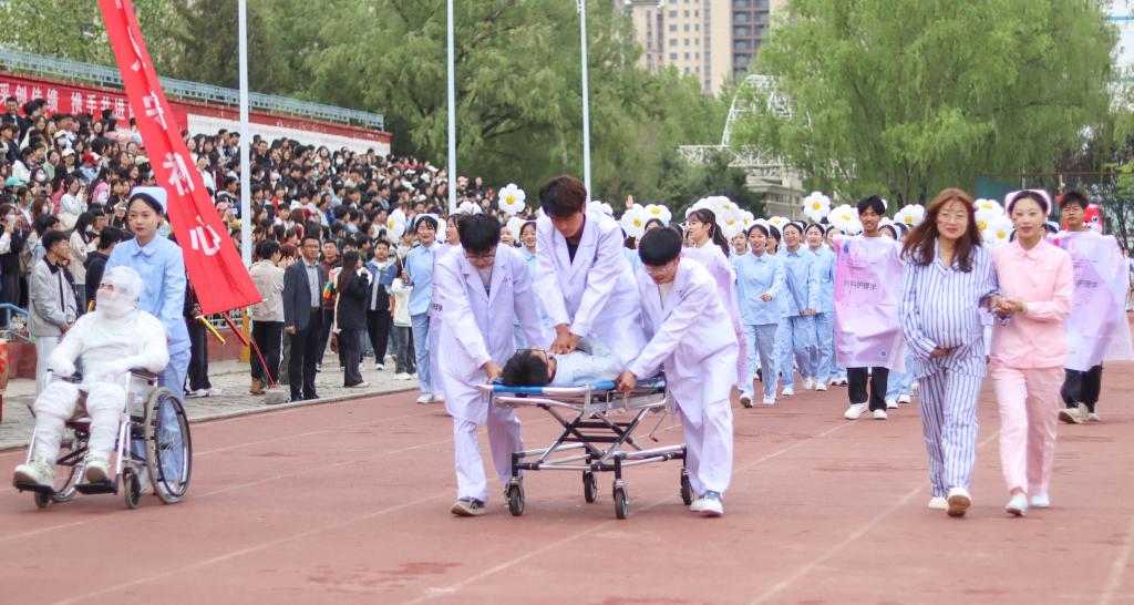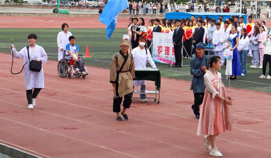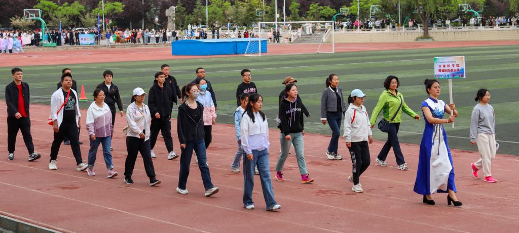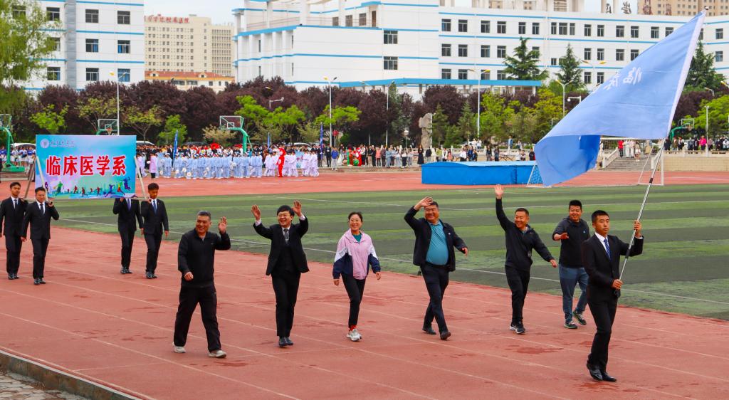 伴随着欢快激昂的旋律,各代表队、各院系方阵有序入场,他们步伐坚定、精神饱满、气宇轩昂,彰显了甘医师生昂扬向上、团结奋进的精神风貌。