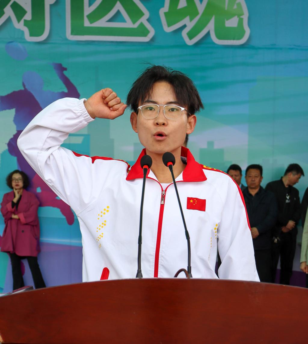 张东利同学和贾琚杰老师分别代表运动员和裁判员宣誓。