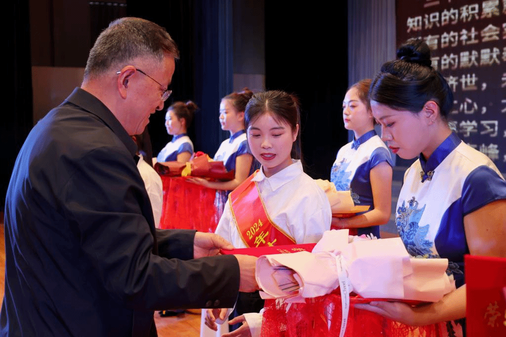 表彰会上,播放了获奖学生和先进集体事迹风采视频和颁奖词,学校领导为先进个人和先进集体颁奖。