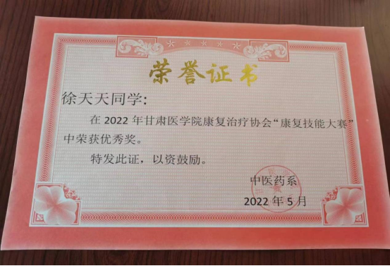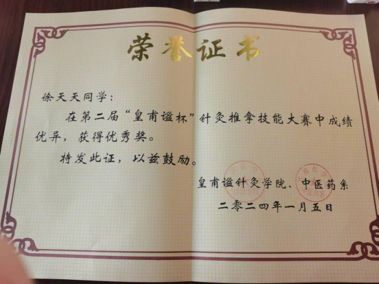 据班主任张浩飞老师介绍,在学习方面,徐天天总是显得非常自信和积极,课堂上认真听讲,积极参与讨论,不断提升自己的学习能力和水平。张浩飞说,除了学习,徐天天在课外活动中也表现出色。她有着广泛的兴趣爱好,积极参加学校和班级组织的各种比赛和活动,比如在学校举办的趣味运动会上,徐天天参加了所有的项目;参加每年的“迎新杯”比赛,也曾担任中医药系系学生会文体部干事,学生社团康复治疗协会会长等。在这些活动中,她不仅展现了自己的才华和组织能力,这体现了强烈的社会责任感和集体荣誉感。在志愿者活动中,徐天天总是个活跃分子,她不仅积极参与,还会主动组织同学们一起参与,用行动去影响和带动更多人,徐天天宿舍中就有三名同学是入党积极分子,“她很活泼,懂得关心和帮助他人,与我们都相处融洽,我们都很喜欢她”同学王亭亭说,她的善良和友爱使得我们的友情更加长久。