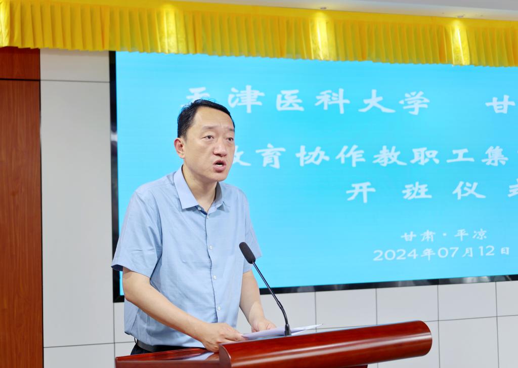 7月12日上午,天津医科大学 甘肃医学院教育协作教职工集中培训班在学校三号教学楼报告厅举行开班式。
