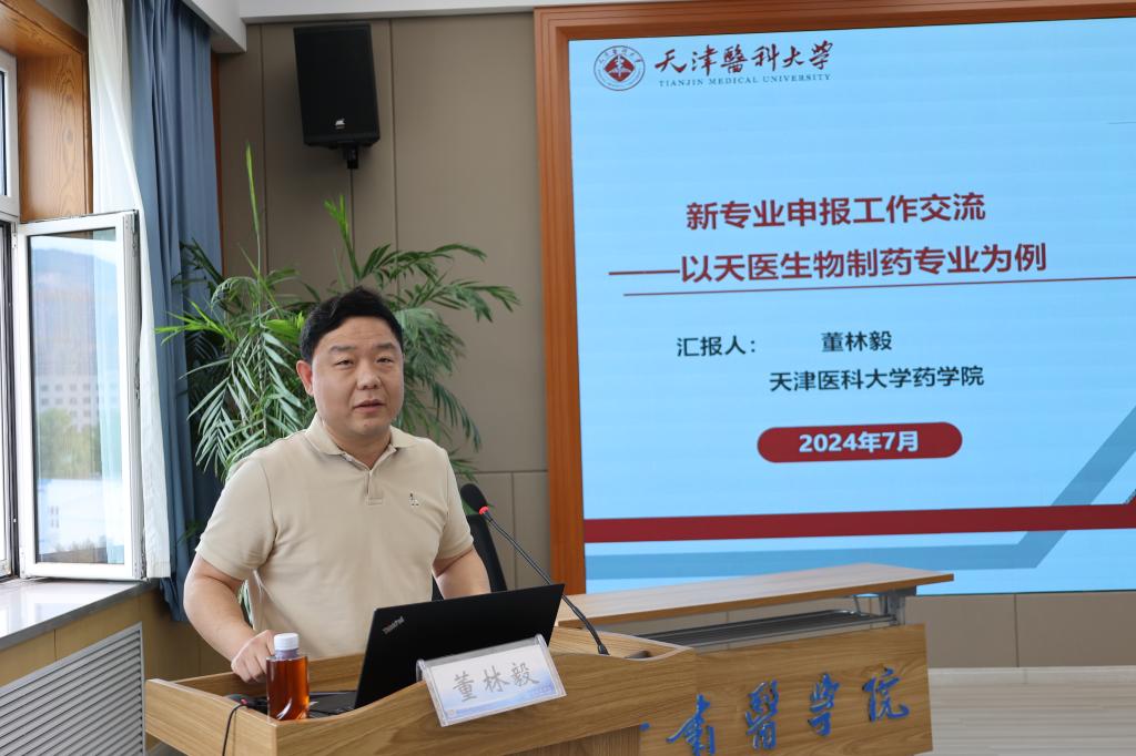 天津医科大学药学院副院长董林毅副教授作《新专业申报工作交流—以天医生物制药专业为例》专题讲座