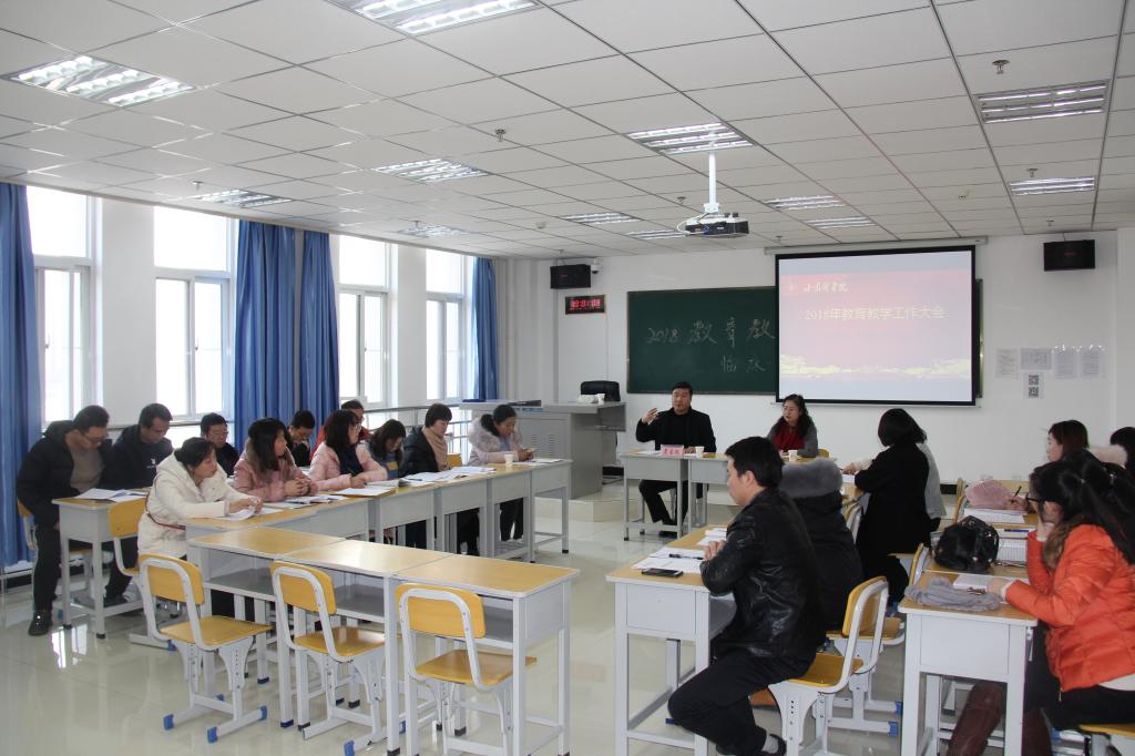 会上,王坤院长作了题为《加强内涵建设,推进四个回归,为建设合格医学本科院校而努力奋斗》的教育教学工作报告。王坤院长从九个方面全面总结了升本以来的教育教学工作,王院长指出,升本以来,学院始终围绕创建合格医学本科院校的奋斗目标,坚持以立德树人、提高人才培养质量为根本任务,牢固树立教学工作的中心地位,以加强本科学科与专业建设为抓手,充分发挥各教学部门的协同作用,不断加强教学基本建设和学科专业建设,深化教学改革,完善教学管理,健全质量监控,优化人才培养模式,创新管理体制机制,不断加强党对教育工作的全面领导,确保教学工作的中心地位不动摇;教育教学理念不断更新;本科专业结构逐年优化;人才培养方案日趋完善;教育教学管理逐步规范;教育教学改革不断加强;亮点荣校工程成效显著;学院办学条件不断完善;合作交流办学摸索前行。王院长从七个方面安排部署了2019年教育教学工作,强调指出:学院教育教学工作要以习近平新时代中国特色社会主义思想为指导,牢固树立“四个意识”,坚定“四个自信”、坚决做到“两个维护”,全面贯彻全国教育大会和新时代全国高等学校本科教育工作会议精神,突出“以本为本”的核心理念,以首届本科毕业生教育质量考核验收为契机,不断深化教育教学工作在观念、内容、方法上的改革创新,全面加强教师队伍和教育能力建设,努力提高教育教学质量,坚定不移地朝着“创建合格医学本科院校”的目标开拓奋进。要强化本科教育理念,不断丰富教育教学内涵;要加强师资队伍建设,不断提高教学能力和水平;要深化教学改革,不断完善教学管理体制;要以质量促发展,实施本科教育质量建设工程;要加快信息化建设,促进教育教学全面发展;要引导学生回归常识,促进学生成长成才;要提高认识,全力迎接首届本科毕业生教育质量考核验收。