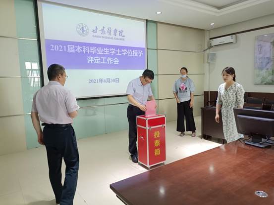 会上,学院副院长、附属医院党委书记,学士学位评定工作领导小组副组长雷鹏举宣读了本次会议决议草案,与会委员对决议草案进行了表决。根据《甘肃医学院学位评定委员会工作条例(试行)》《甘肃医学院普通本科毕业生学士学位授予实施办法(试行)》等规定,与会委员全票同意授予白斌等407名本科毕业生医学学士学位,授予曾昊等770名本科毕业生理学学士学位。