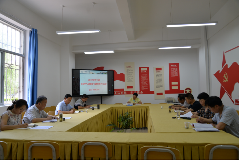 7月20日,党委书记高淑美以普通党员身份参加所在的办公室党支部党史学习教育专题组织生活会,同支部党员一起认真学习贯彻习近平总书记在庆祝中国共产党成立100周年大会上的重要讲话精神,围绕“学党史、悟思想、办实事、开新局”主题,交流学习体会,检视自身差距,剖析思想根源,明确整改措施。