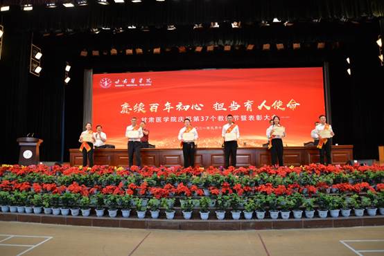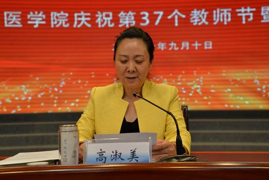 赓续百年初心,担当育人使命。9月10日下午,学院在体育馆隆重召开庆祝第37个教师节暨表彰大会。党委书记高淑美出席会议并讲话,院长王坤主持会议,党委副书记、副院长崔安平宣读表彰决定。副院长李诚,纪委书记杨建福,副院长、附属医院党委书记雷鹏举出席会议。
