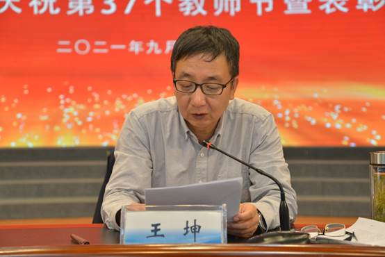 王坤在主持讲话中强调,百年大计,教育为本;教育大计,教师为本。在向着全面建成社会主义现代化强国的第二个百年奋斗目标迈进的新征程中,新时代中国特色社会主义赋予了我们培养合格建设者和接班人的神圣使命,赋予了我们为健康中国、健康甘肃战略提供有力人才支持和智力支撑的重大责任。全体教师要以这次会议为契机,认真学习领会习近平总书记“七一”重要讲话精神,铭记中国共产党百年奋斗历程,传承红色基因,坚定初心使命,切实担当为党育人、为国育才的光荣使命,继续发扬勇于争先、努力进取、甘于奉献的精神,不断提高业务能力和教育教学质量,为建设新型应用型高等医学院校作出新的更大贡献。
