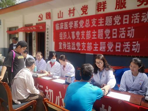 为更好地将党史学习教育推向纵深,认真细致扎实开展好“我为群众办实事”实践活动,切实解决基层群众最直接、最现实的问题,切实把好事办实,把实事办好,办到群众心坎上。学院临床医学系党总支联合组织人事党支部、宣传统战党支部,组织党员师生近30人,于9月12日一大早赶赴学院帮扶点——庄浪县卧龙镇魏山村开展“送医送药下乡、助力乡村振兴”主题党日活动,将党史学习教育、“七一”重要讲话精神、国家最新的农村医疗卫生政策传达到村民心中,将优质医疗服务送到了群众家门口,切实帮助解决群众看病难的问题。