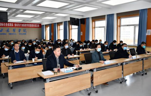 高淑美就做好当前和今后一个时期学院的教学工作强调指出,一要坚持正确办学方向,全面落实立德树人根本任务。牢牢站稳政治立场,坚持正确政治方向,坚持党对学院教育工作的全面领导,切实把党的教育方针贯穿到教育教学和人才培养全过程、各环节,抢抓医学教育创新发展的机遇,牢固树立教学工作的中心地位,全面落实好立德树人根本任务;二要不断强化内涵建设,持之以恒提升教育教学质量。在内涵建设上下功夫,在提升教育教学质量上下功夫,转变教育教学思想观念,不断提升教师教学水平,持续深化教育教学改革,推动《甘肃医学院关于进一步加强本科教学工作全面提高教学质量的实施意见》《甘肃医学院关于加强本科教学质量保障与监控体系的实施意见》落地落实,在建成合格医学本科院校的基础上,建设新型应用型医学本科院校。三要全力以赴迎评促建,确保合格评估顺利通过。迎接教育部本科教学工作合格评估,是当前学院发展的头等大事,容不得半点马虎和懈怠,全体教职员工要坚持问题导向,坚定信心决心,强化责任落实,强弱项、补短板,做到思想上更重视、态度上更端正、部署上更精细、措施上更扎实,全力以赴推进迎评促建各项工作落地落实。