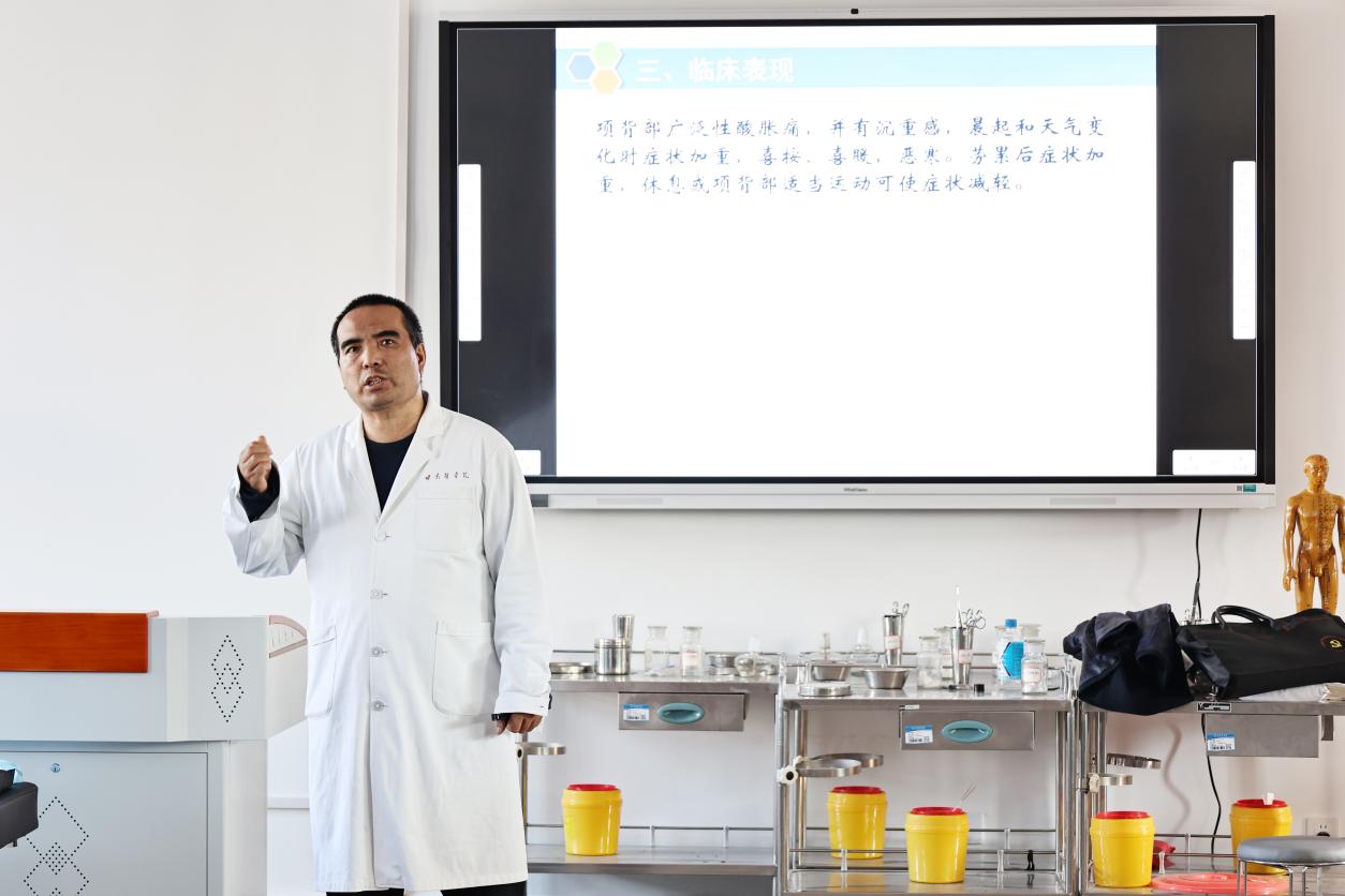 本次培训为期5天,采取理论讲座与跟岗学习相结合,观摩交流与实践操作相结合的方式进行。甘肃医学院李莲英教授、刘君奇教授、李静雅教授、王利军副教授、刘晓刚副教授、万改红副教授分别作了题为《中成药合理使用及医德医风建设》《特定穴的使用方法》《突发公共卫生事件应急处置》《手法治疗颈椎病》《常见疾病按摩治疗》《儿童常见病保健与防治》的专题讲座。11月7日至8日,全体学员分批前往甘肃医学院附属医院内科、全科医学科、呼吸内科、皮肤科等科室和国医馆进行跟岗学习。