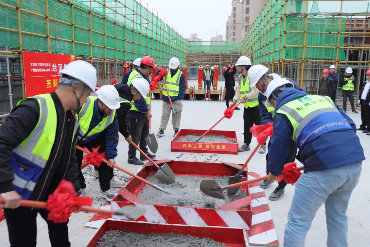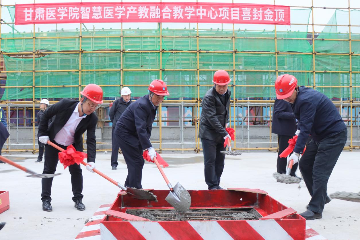 11月12日上午,甘肃医学院智慧医学产教融合教学中心项目建设顺利封顶。学校党委书记汪永锋、校长王坤、纪委书记杨建福、党委副书记李岳,副校长赵玉敏、刘凯及相关部门、施工单位、监理单位负责人参加项目封顶仪式。