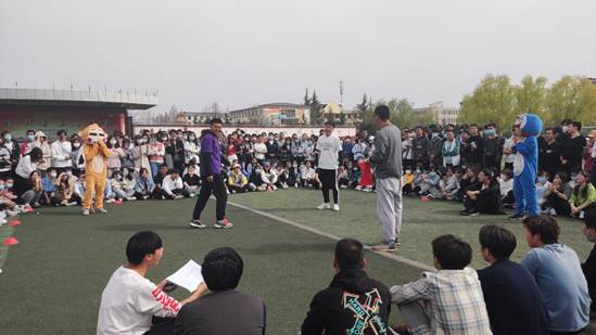 同时,在比赛休息阶段,组织学生开展斗鸡游戏、个人才艺展示、社团舞蹈表演等,进一步增加了活动的趣味性,让同学们在比赛之余释放了压力,身心得到了放松。